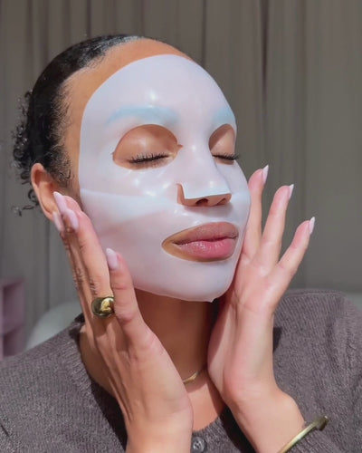 Hvordan den fungerer: Glass Skin Hydrogel Mask er utviklet ved hjelp av hydrogelteknologi, og er først en hvit maske som gradvis blir gjennomskinnelig etter hvert som den smelter inn i huden.